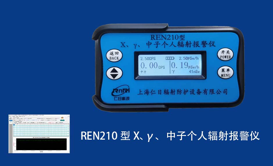 REN210型X、γ、中子個人輻射報警儀內(nèi)置SiPM和鋰玻璃晶體組成中子探測器儀器,采用反照率方式探測中子射線,同時也能探測X、γ射線。因此它可同事監(jiān)檢測X、γ、中子三種射線。能顯示工作場所的劑量當量率和累積劑量,更換電池時,日期及累積數(shù)據(jù)能永久保存。可選配RenRiPersonal個人劑量管理軟件,該軟件可存儲多個人的歷史數(shù)據(jù),能記錄日累積、月累積、年累積、輻照時長、計算平均劑量率、扣除或不扣除本底輻射,且以文字和圖譜的方式展現(xiàn)數(shù)據(jù)。廣泛應用于環(huán)保、化工、水泥、煤礦、土木工程、石油、醫(yī)院、疾控、進出口商檢、核電、加速器、機場、中子源庫和其他安檢、邊境控制海關檢測等領域中的工作人員進行個人安全防護監(jiān)測及放射性提示。